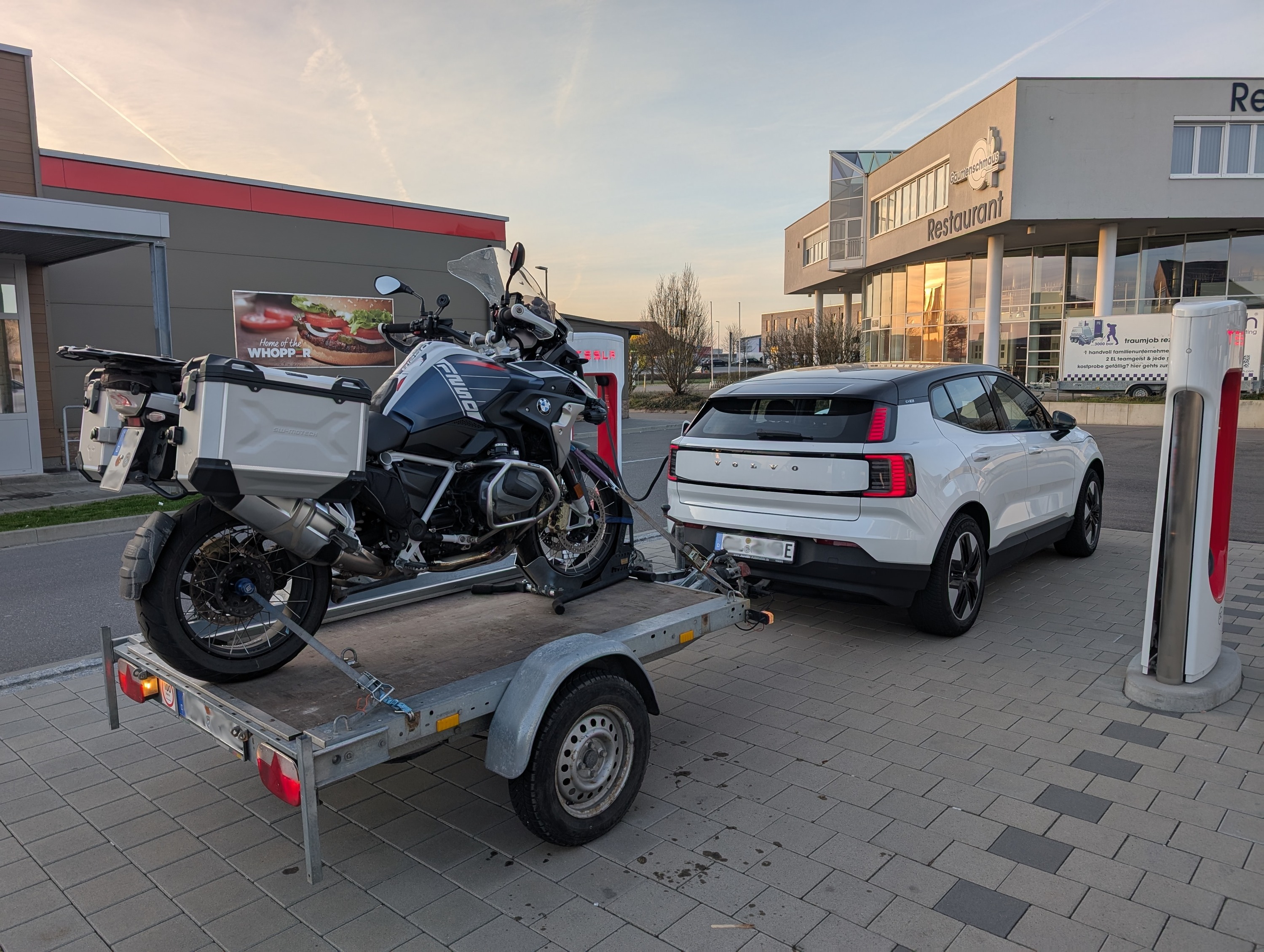Volvo EX30 mit Motorradanhänger